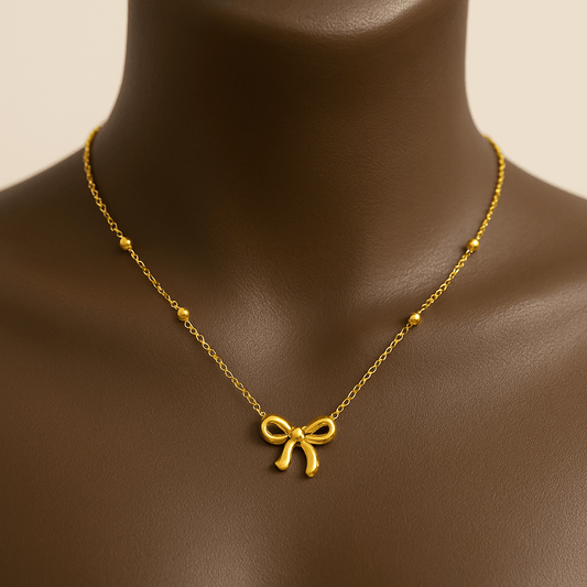 • 18kt Gold Plated Bead Chain Bow Charm Necklace - Manoune JEWELRY Belly_Jewelry Earrings - Navel_Ring - Necklace - Stud - Manoune_Jewelry - Belly_Ring - Navel_Jewelry Titanium Gold_Plated
