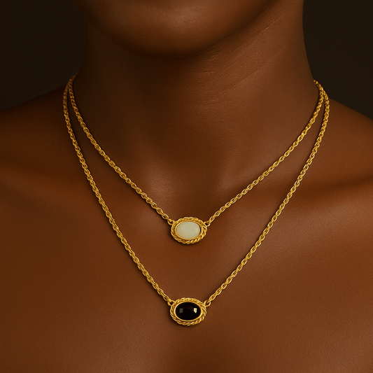 • 18kt Gold Plated Cats Eye Stone Gold Plated Layered Opal Necklace - Manoune JEWELRY Belly_Jewelry Earrings - Navel_Ring - Necklace - Stud - Manoune_Jewelry - Belly_Ring - Navel_Jewelry Titanium Gold_Plated