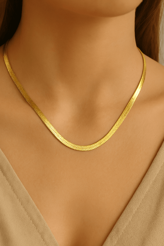 • 18kt Gold Plated Herringbone Blade Snake Chain Necklace - Manoune JEWELRY Belly_Jewelry Earrings - Navel_Ring - Necklace - Stud - Manoune_Jewelry - Belly_Ring - Navel_Jewelry Titanium Gold_Plated