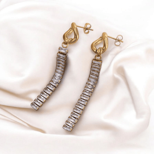 • 18k Gold Plated CZ Tennis Chain Cubic Zirconium Link Drop Dangle Earrings - Manoune JEWELRY Belly_Jewelry Earrings - Navel_Ring - Necklace - Stud - Manoune_Jewelry - Belly_Ring - Navel_Jewelry Titanium Gold_Plated