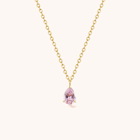 18kt Gold Plated Zircon Water Drop Teardrop Pendant Birthstone Necklace
