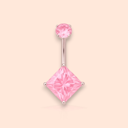 Titanium Belly Ring Barbell Piercing with Square CZ