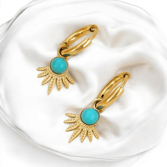 18kt Gold Plated Dangle Turquoise flower Stone Earrings