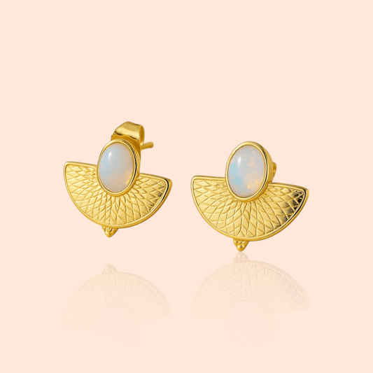 18kt Gold Plated Oval Fanshaped Albumin Stone Stud Earrings
